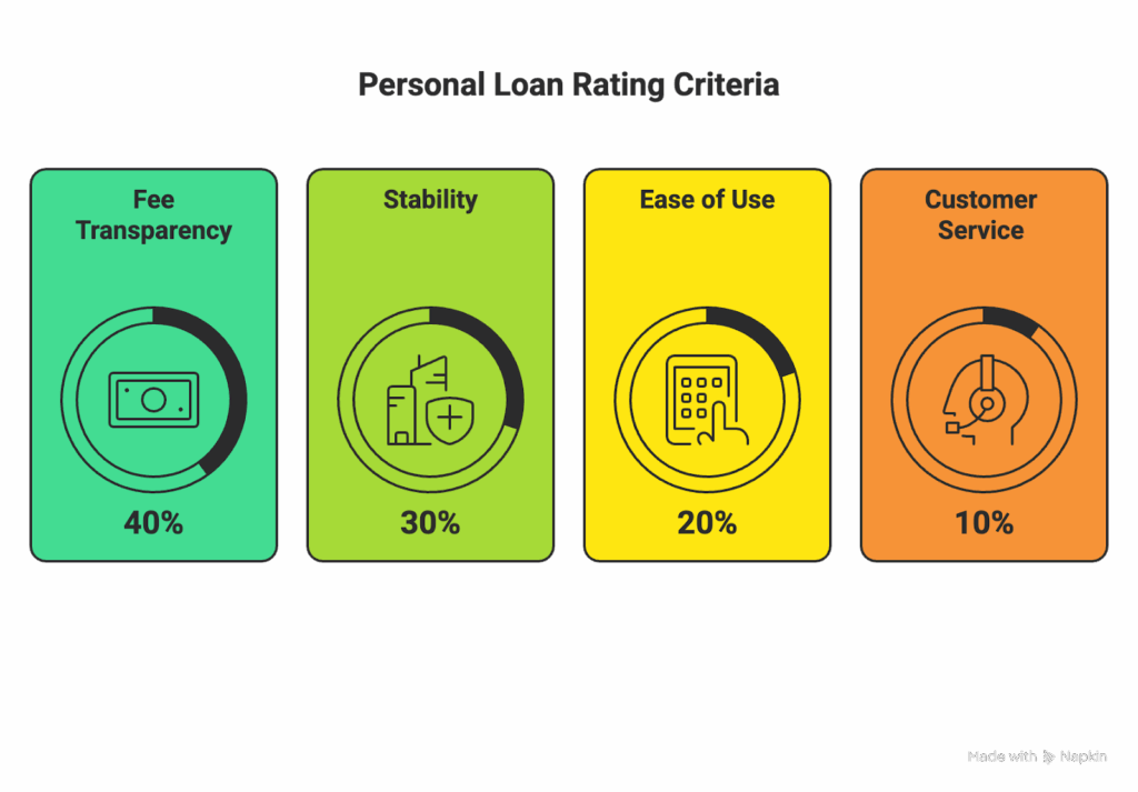 • Fee Transparency (40%): We heavily penalize lenders that charge Origination Fees (upfront costs taken from your loan). Our top-rated lenders charge $0 in origination, late, or prepayment fees.